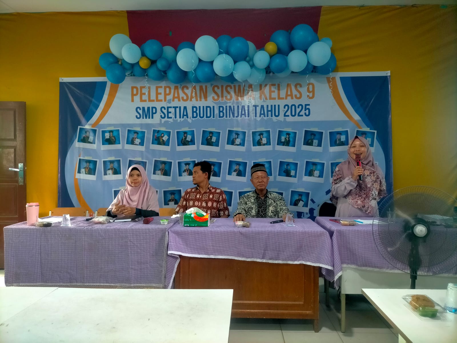 Binjai. Kamis, 22 Mei 2025. telah dilaksanakan pengumuman kelulusan siswa/i kelas IX tahun pelajaran 2024/2025 pada SMP Swasta Setia Budi Binjai. Kegiatan ini Pengumuman kelulusan ini dihadiri oleh bapak Drs. M. Syahrin lubis (Selaku Bapak Pengurus Yayasan Pendidikan Setia Budi Binjai), Ibu Sri Rezeki. S.Pd (selaku kepala sekolah SMP Setia Budi), Bapak Rausin...